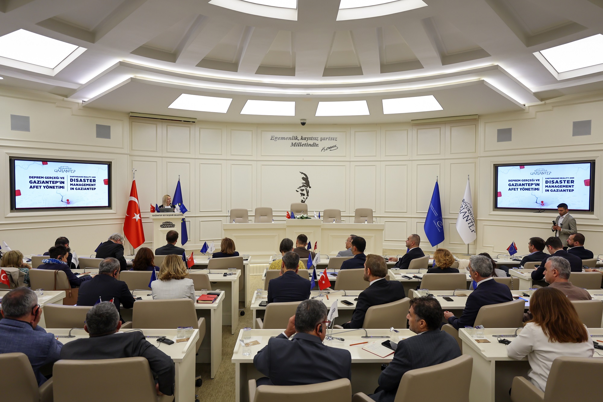 “Deprem Gerçeği ve Gaziantep’in Afet Yönetimi” Teknik Toplantısı, Büyükşehir Meclis Salonu’nda yapıldı. Toplantıya Avrupa Konseyi Parlamenterler Meclisi, Avrupa Birliği Türkiye Delegasyonu ve çeşitli ülke büyükelçiliklerinden temsilciler katıldı.