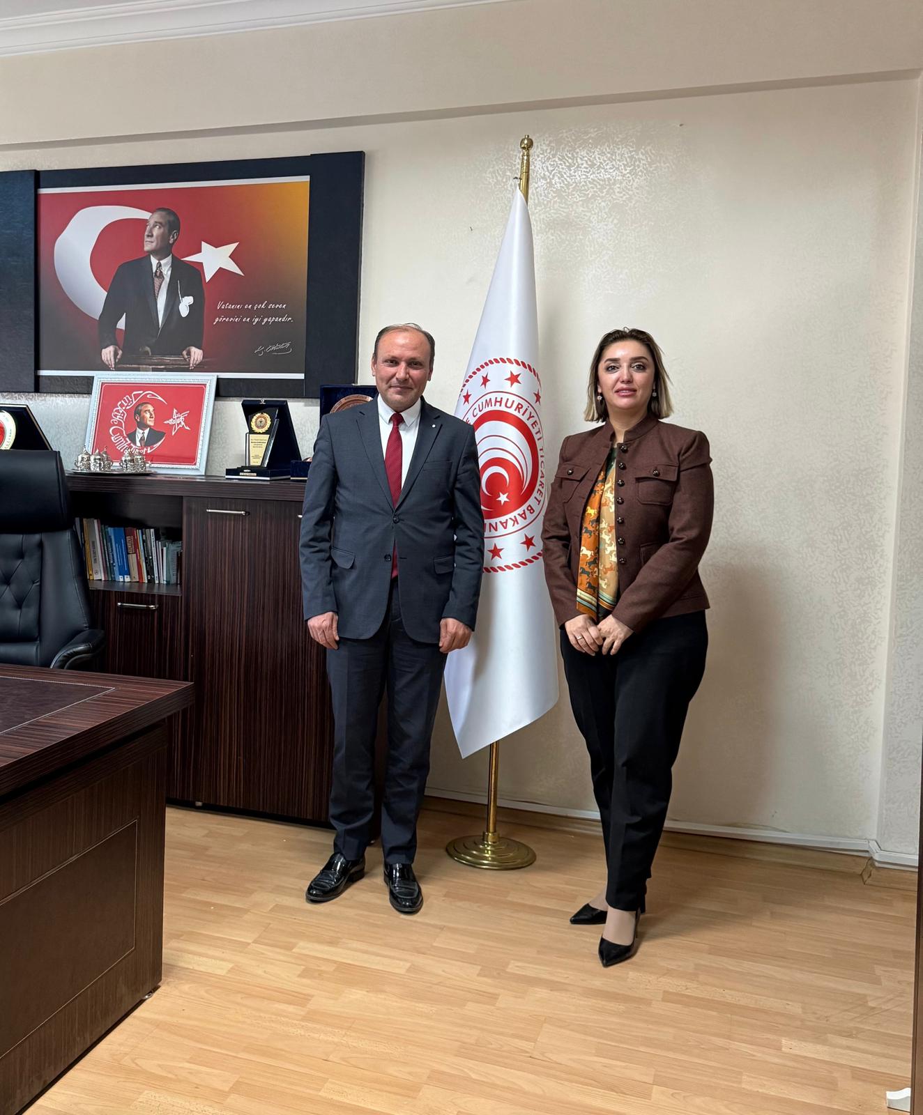 Uluslararası Gazeteciler Cemiyeti (UGC) Gaziantep İl Temsilcisi Aslı Emektar, Gaziantep Ticaret İl Müdürlüğü görevine yeni atanan Burhan Kahraman’ı makamında ziyaret ederek yeni görevi için başarı dileklerini iletti.
