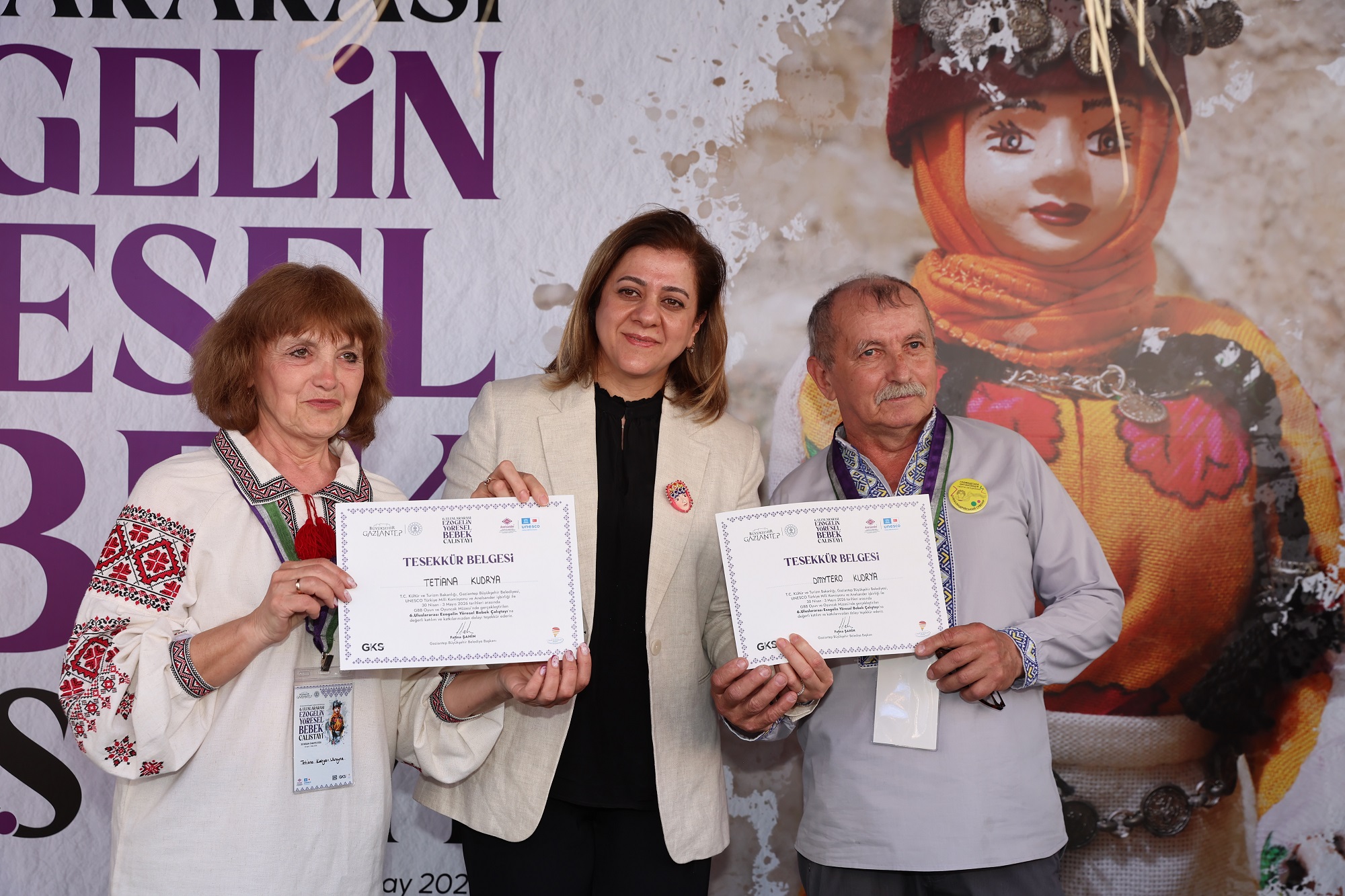 Programda kurdele kesim töreni öncesinde, dünyanın ve Türkiye’nin farklı bölgelerinden Gaziantep’e gelen bez bebek sanatçılarına ve eğitmenlere, çalıştaya katılımlarından dolayı teşekkür belgesi takdim edildi. Belgeler protokol üyeleri tarafından verildi.