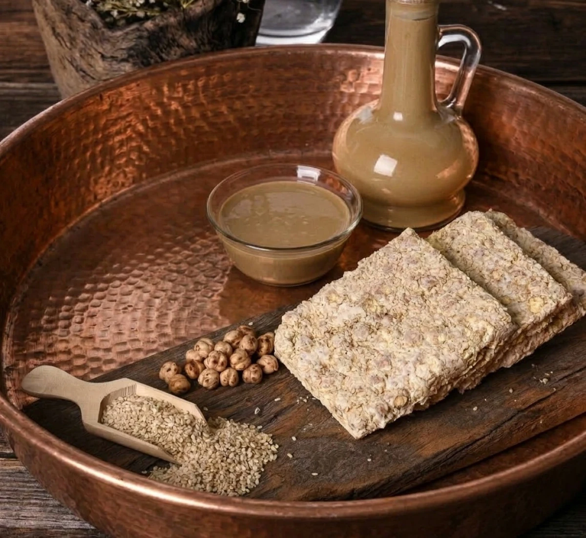 Kısmen sert ve kırılgan yapısıyla öne çıkan ürün, leblebi ve susam taneleriyle zenginleştirilmiş beyaz krem tonlarındaki görünümüyle dikkat çekiyor. Ürün, leblebi, susam ve şeker aromasıyla karakterize edilirken, yabancı tat ve koku içermemesi sayesinde özgünlüğünü koruyor.