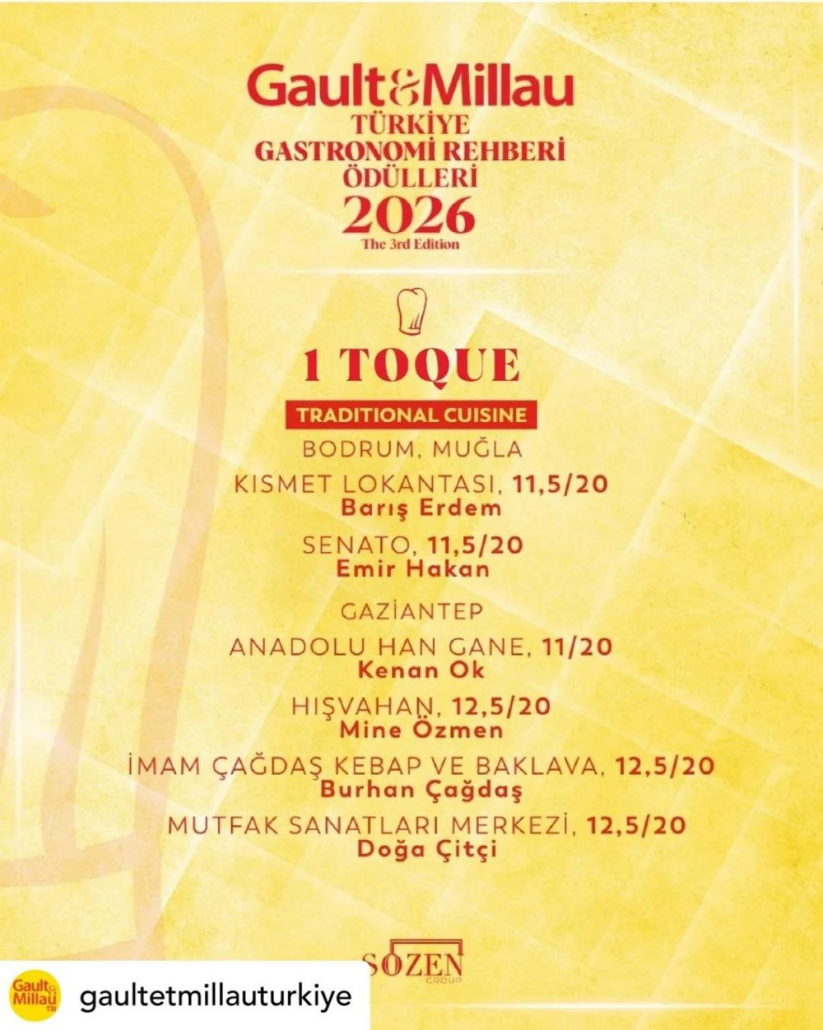 Türkiye’nin gastronomi sahnesinde heyecan verici bir gelişme yaşandı. Dünyanın saygın lezzet rehberlerinden Gault&Millau, 2026 Türkiye Gastronomi Rehberi’ni duyurdu. Bu yıl üçüncüsü yayımlanan rehberde, geleneksel mutfak kategorisinde “1 Toque” ödülüne layık görülen restoranlar arasında Gaziantep’ten dört mekân öne çıktı.