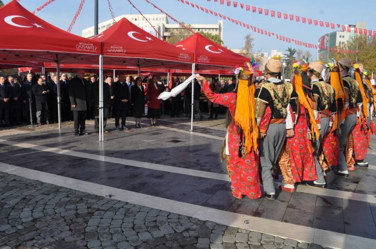 Şehitler Anıtı'na çelenk konulmasının ardından Antep kahramanlığı adına öğrenciler, şiirler okudu ve folklor gösterisi sunumu yapıldı.