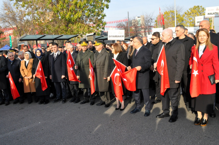 Daha sonra protokol üyelerinin de katılımıyla gerçekleştirilen kortej yürüyüşü, Yeşilsu Parkı'ndaki Şehitler Abidesi'nde son buldu.