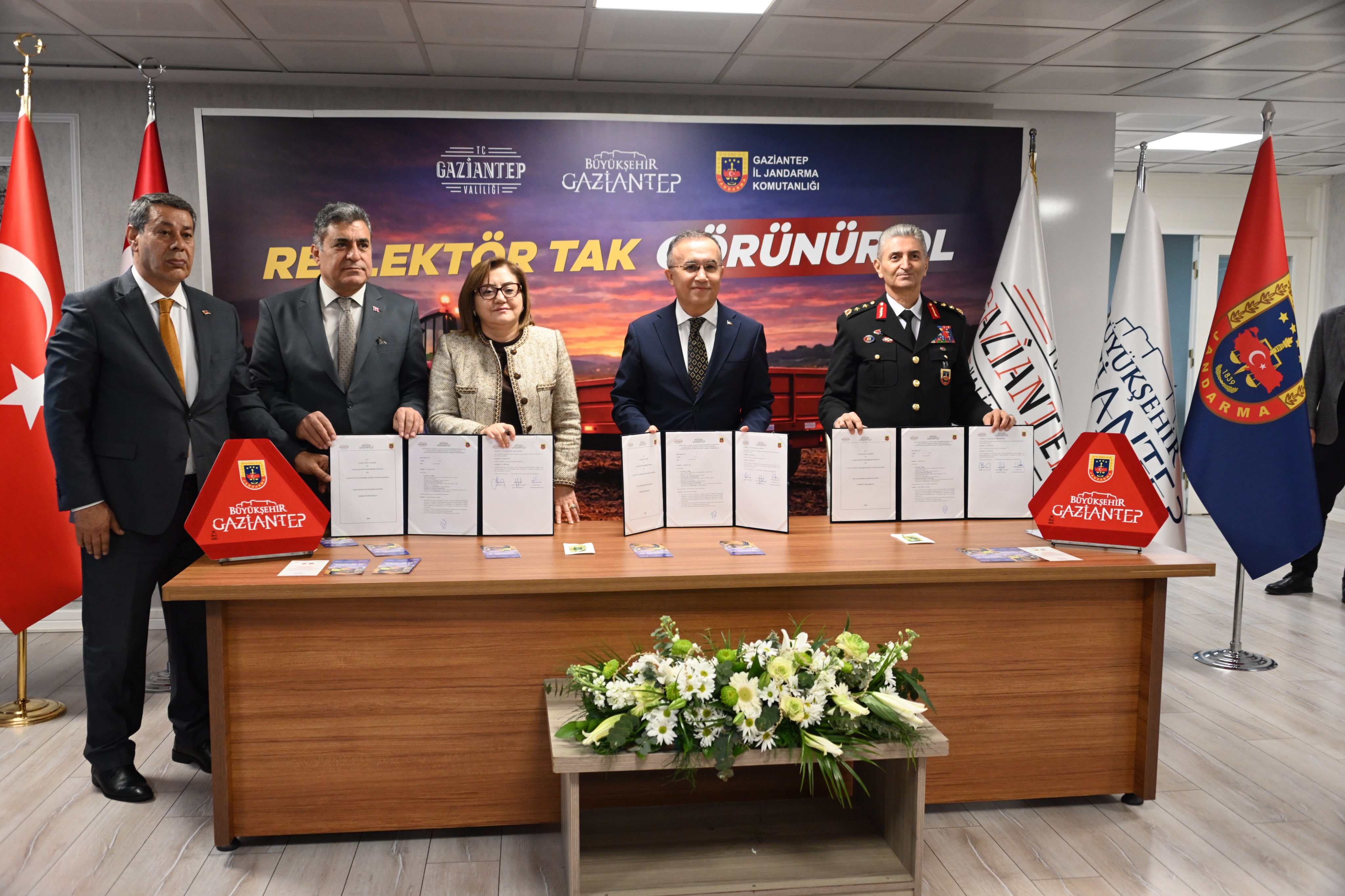Gaziantep Büyükşehir Belediyesi, Gaziantep Valiliği ve Gaziantep İl Jandarma Komutanlığı iş birliğinde, Çiftçi Kayıt Sistemi’ne (ÇKS) kayıtlı ve traktörü bulunan çiftçilere yönelik “Reflektör Tak Görünür Ol” projesi kapsamında reflektör dağıtımı için protokol imzalandı.