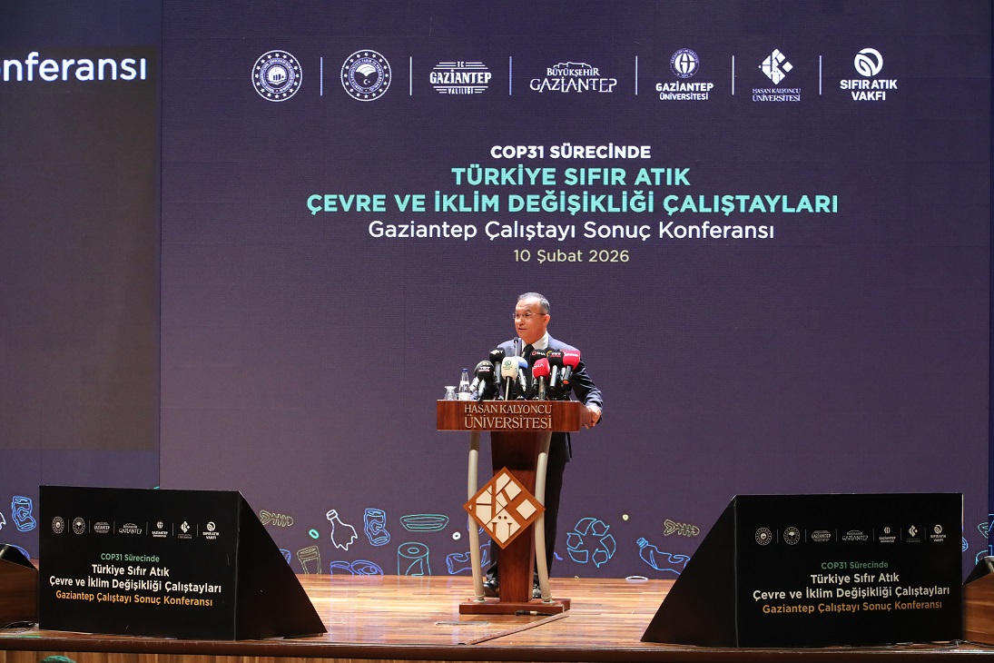 Hasan Kalyoncu Üniversitesi (HKÜ) ev sahipliğinde; Sıfır Atık Vakfı, Gaziantep Valiliği, Gaziantep Büyükşehir Belediyesi, Gaziantep Üniversitesi (GAÜN), Gaziantep Çevre, Şehircilik ve İklim Değişikliği İl Müdürlüğü ile Gaziantep İl Tarım ve Orman Müdürlüğü iş birliğinde düzenlenen “Gaziantep Çalıştayı Sonuç Konferansı”, Tarım ve Orman Bakanı İbrahim Yumaklı’nın katılımıyla gerçekleştirildi.