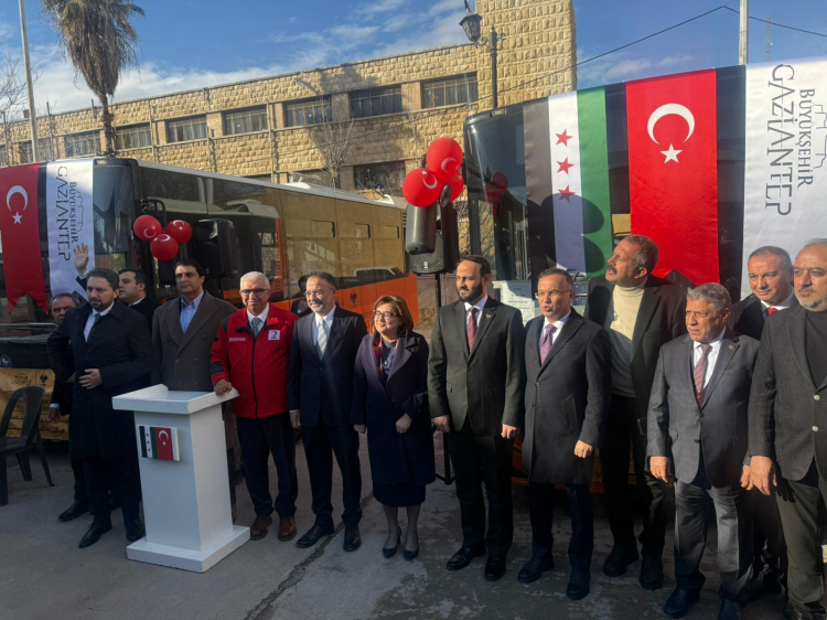 Gaziantep Büyükşehir Belediyesi: Halep Valiliği’ne şehir içi ulaşımda kullanılmak üzere 5 adet modern otobüs hibe etti. Ayrıca, Halep’in merkezinde 150 dönümlük devasa bir alana Recep Tayyip Erdoğan Millet Bahçesi inşa edilecek. Başkan Fatma Şahin, Halep’te doğup büyümüş çocukların kendisinden bizzat "Galle Park" benzeri bir park istediklerini belirterek bu talebin hızla yerine getirileceğini müjdeledi.