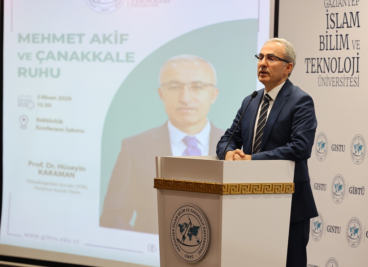 Gaziantep İslam Bilim ve Teknoloji Üniversitesi’nde (GİBTÜ), “Mehmet Akif ve Çanakkale Ruhu” konulu konferans yoğun katılımla gerçekleştirildi. Yükseköğretim Kurulu (YÖK) Yürütme Kurulu Üyesi Prof. Dr. Hüseyin Karaman; Millî Şairimiz Mehmet Akif Ersoy'un fikirleri, yaşamı ve mücadelesiyle gençliğe örnek teşkil eden bir kişilik olduğunu belirtti. Karaman, Akif’in asıl davasının hakikati haykırmak ve hakkın yanında yer almak olduğunu vurguladı.