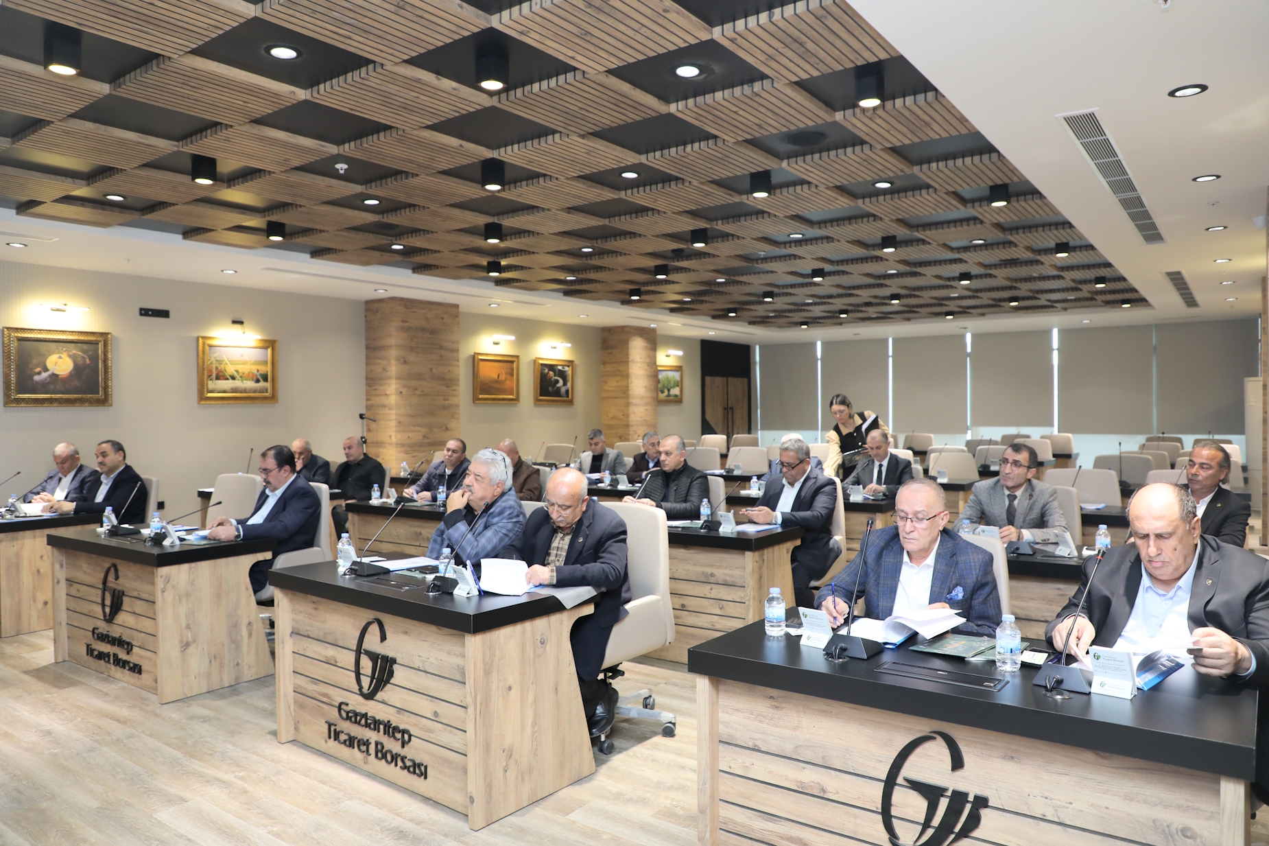 Gaziantep Ticaret Borsası (GTB) Aralık Ayı Olağan Meclis Toplantısı, Meclis Başkanı Ahmet Tiryakioğlu başkanlığında, Yönetim Kurulu Başkanı Mehmet Akıncı ile meclis üyelerinin katılımıyla gerçekleştirildi.
