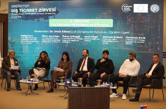 UK Danışmanlık Kurucusu, Öğretim Üyesi Dr. Umut Köksal moderatörlüğünde gerçekleşen ve zirvenin son oturumu olan “Dış Ticarette Dijitalleşme ve E-İhracat” oturumunun konuşmacıları da T.C. Ticaret Bakanlığı E-İhracat ve Yeni Nesil Teknolojiler Dairesi Kıdemli Ticaret Uzmanı Rukiye Duru, Trendyol Group Türkiye Satış ve İş Geliştirme Direktörü Özkan Çokaygil, İKAS İş Geliştirme Müdürü Umut Akgül, Exporgin Dijital Teknolojiler Kurucu Ortağı Mehmet Erdemi, Alibaba.com Türkiye İş Geliştirme ve Kanal Müdürü Abdulaziz Kırak ve Türkiye Kalkınma ve Yatırım Bankası Sektörel Araştırmalar Müdürü Dilara Ay Erişen oldu.