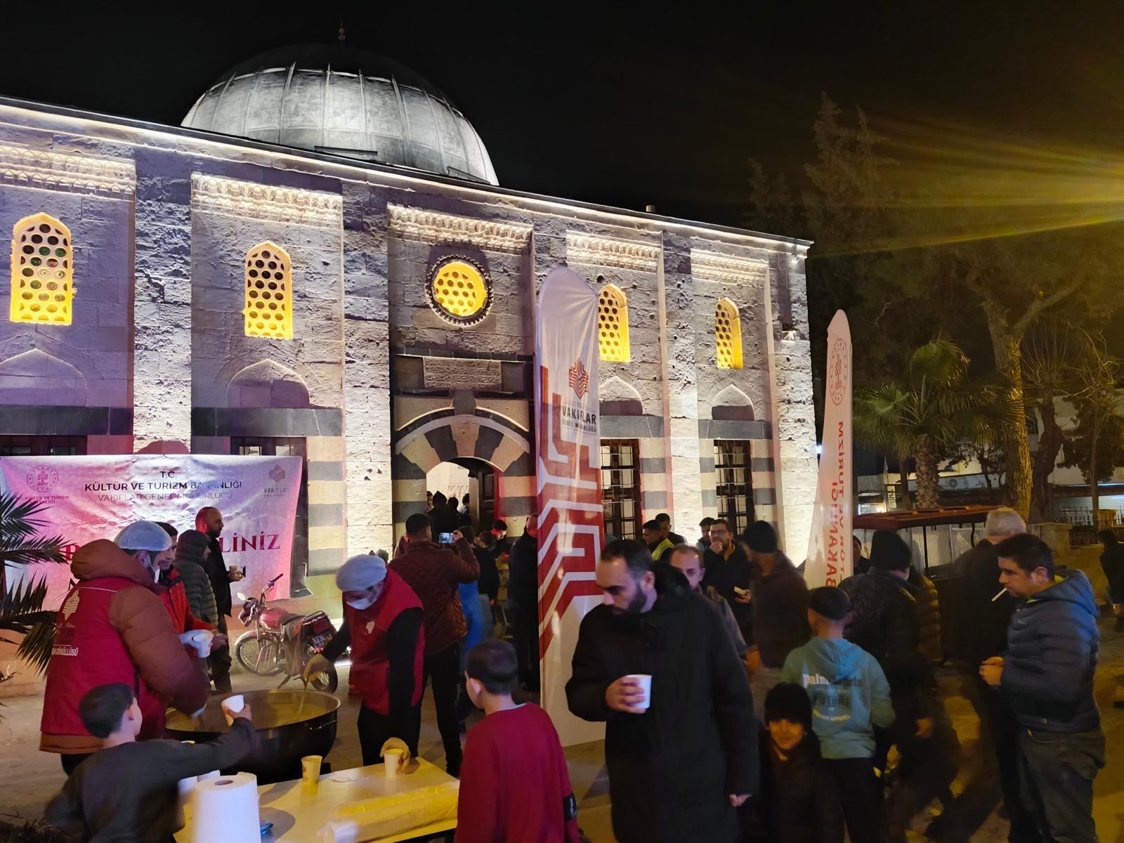 Kültür ve Turizm Bakanlığı Vakıflar Genel Müdürlüğü koordinesinde gerçekleştirilen program kapsamında; Gaziantep, Kahramanmaraş ve Kilis’te belirlenen camilerin önünde stantlar kuruldu. Namazdan çıkan vatandaşlar, soğuk kış akşamında Vakıflar Bölge Müdürlüğü’nün sıcak salep ikramıyla karşılandı.