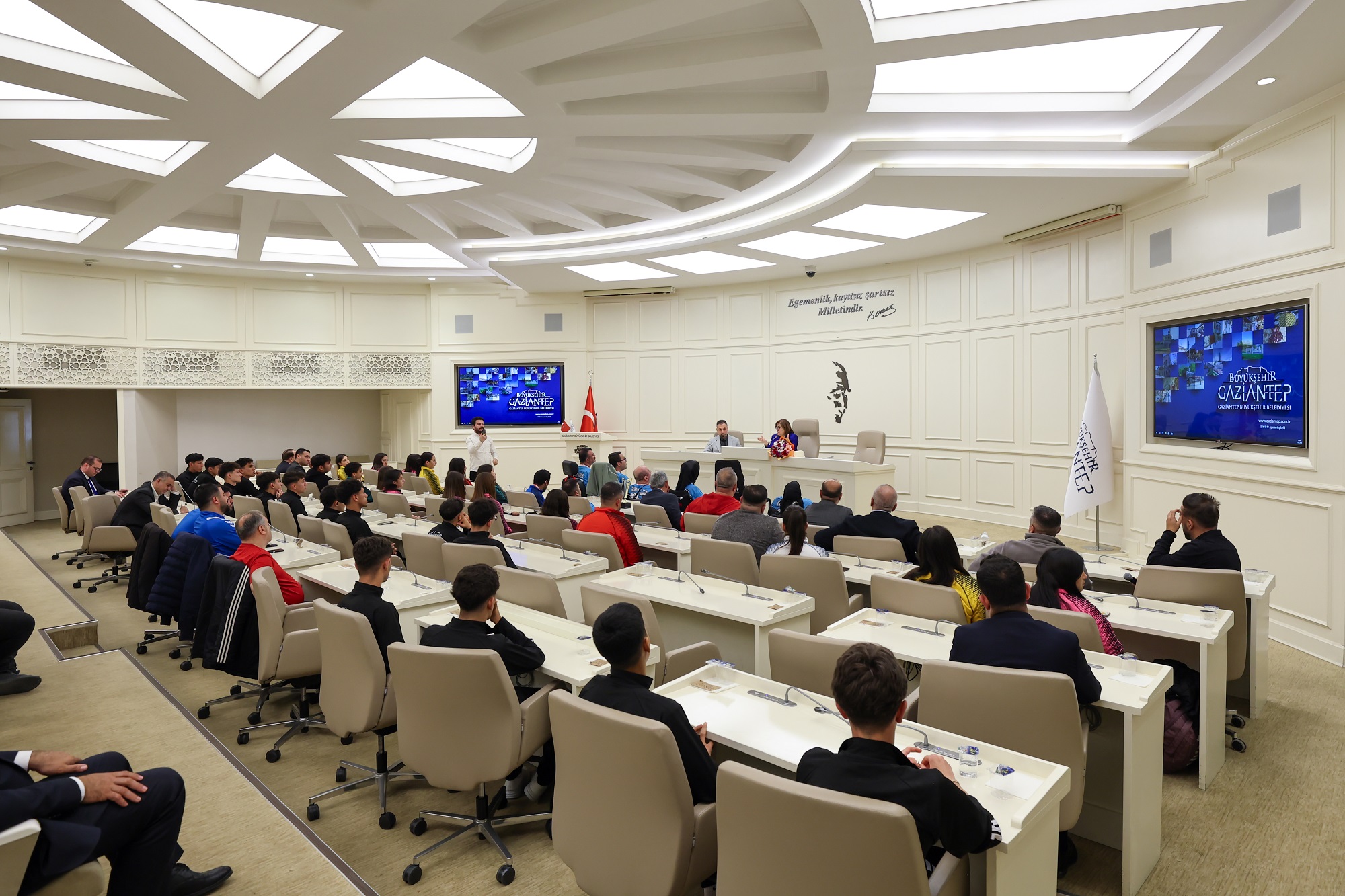 “Spor Şehri Gaziantep” hedefi doğrultusunda çalışmalarını sürdüren Gaziantep Büyükşehir Belediyesi, sporu tabana yaymak ve gençleri spora teşvik etmek amacıyla projelerine devam ediyor. Bu kapsamda Gaziantep Büyükşehir Belediye Spor Kulübü’nün başarı elde eden 50 sporcusu, Başkan Fatma Şahin ile Büyükşehir Belediyesi Meclis Toplantı Salonu’nda düzenlenen buluşmada bir araya geldi.