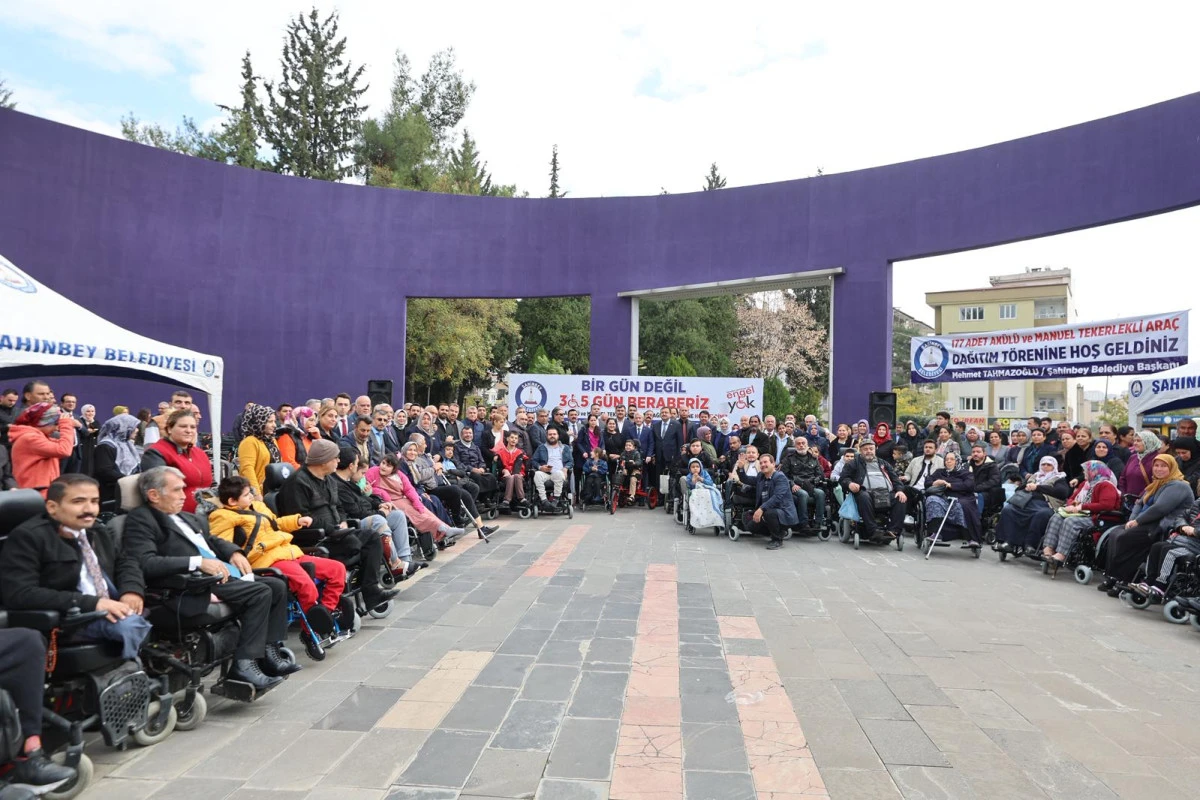 Şahinbey Belediyesi, 3 Aralık Dünya Engelliler Günü kapsamında engelli vatandaşlara yönelik örnek bir sosyal sorumluluk projesine daha imza attı. Belediye Başkanı Mehmet Tahmazoğlu’nun ev sahipliğinde düzenlenen programda, 177 engelli vatandaşa akülü ve manuel tekerlekli sandalye hediye edildi.