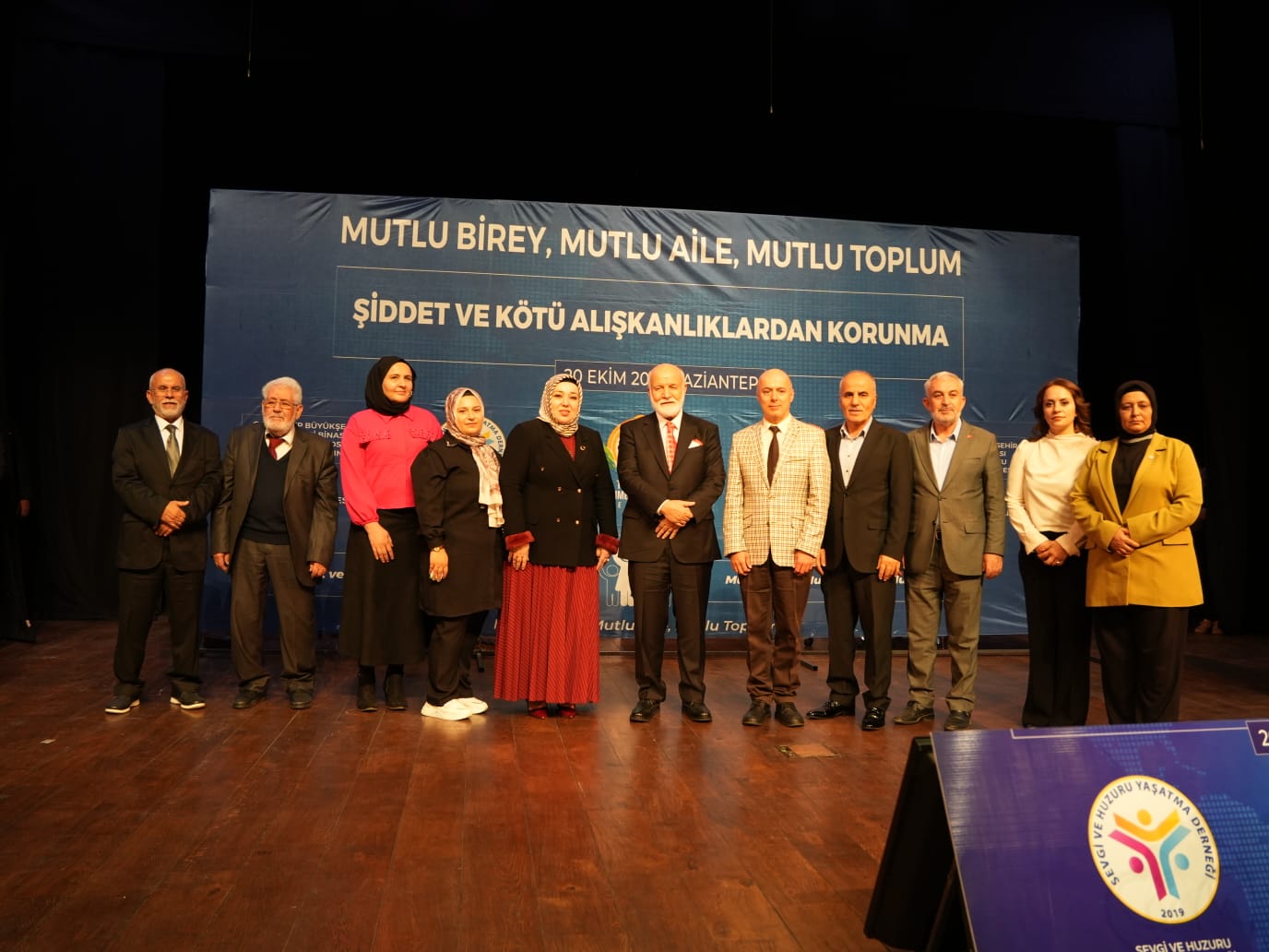 Sevgi ve Huzuru Yaşatma Derneği, UKMER – Uluslararası Uyuşturucu ve Kadına Şiddet ile Mücadele Merkezi Derneği ve Tasavvufu Öğrenmek ve Yaşamak Federasyonu işbirliğiyle düzenlenen “Şiddet ve Kötü Alışkanlıklardan Kurtularak; Mutlu Birey, Mutlu Aile, Mutlu Toplumu Oluşturmak” konulu panel, 20 Ekim’de Gaziantep Büyükşehir Belediyesi Onat Kutlar Tiyatro Sahnesi’nde yoğun katılım ve manevî bir atmosfer eşliğinde gerçekleştirildi.