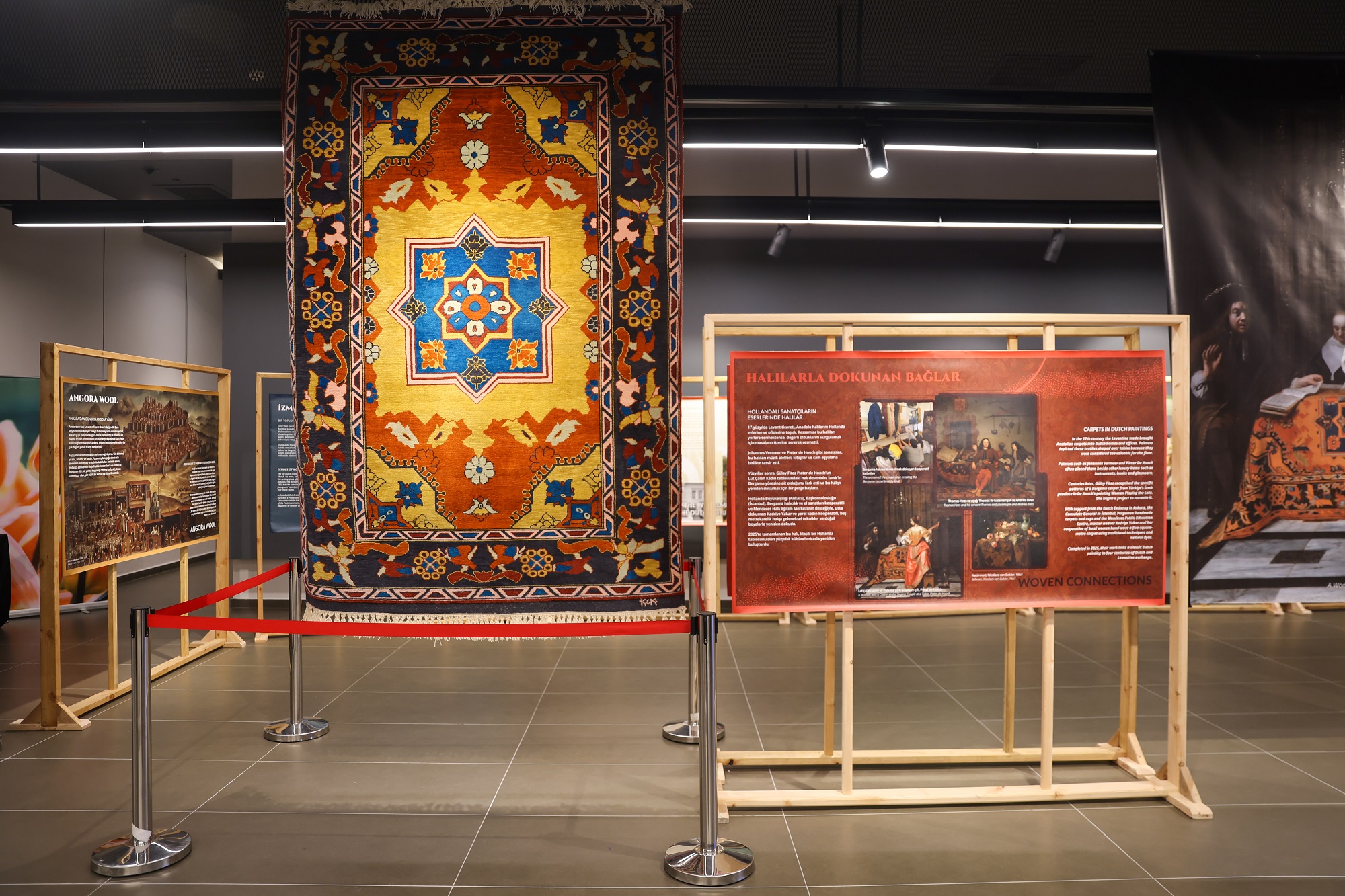 Serginin merkezinde, Johannes Vermeer’in ünlü eseri İnci Küpeli Kız’ı betimleyen bir duvar halısı bulunuyor. “Umut Halısı Projesi” kapsamında hazırlanan eser, 2023 yılında bölgeyi etkileyen depremlerin ardından Kahramanmaraş’ta yüzden fazla depremzede kadın tarafından elle dikildi.